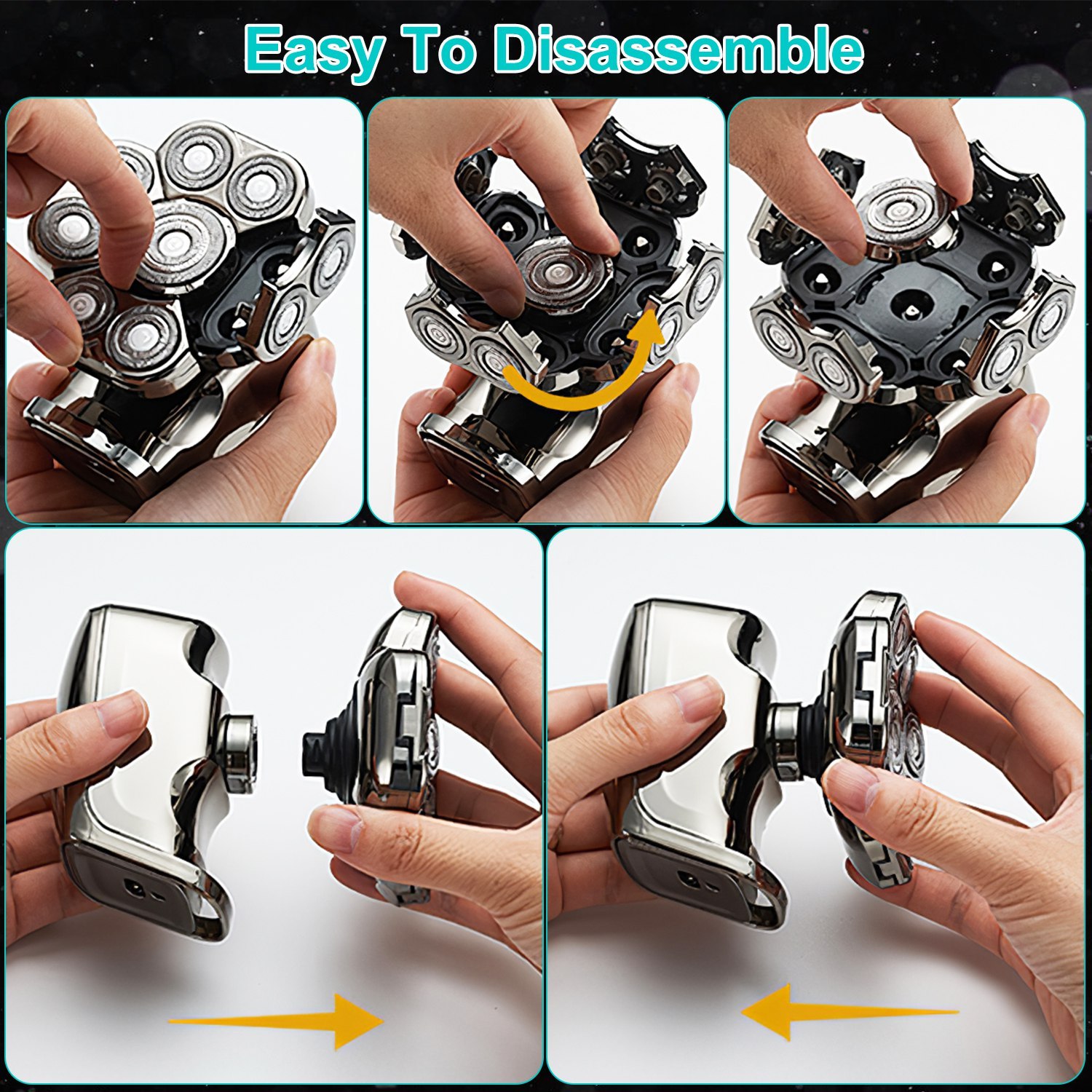 - *IPX6 Waterproof Head Shaver*: With an excellent IPX6 waterproof performance,this electric head shaver is perfect for both wet and dry use. The detachable guard comb and shaving head allow for effortless maintenance. Additionally,the included cleaning brush ensures thorough and convenient cleaning. All components can be easily rinsed under running water,promoting hygiene and extending the shaver’s lifespan.