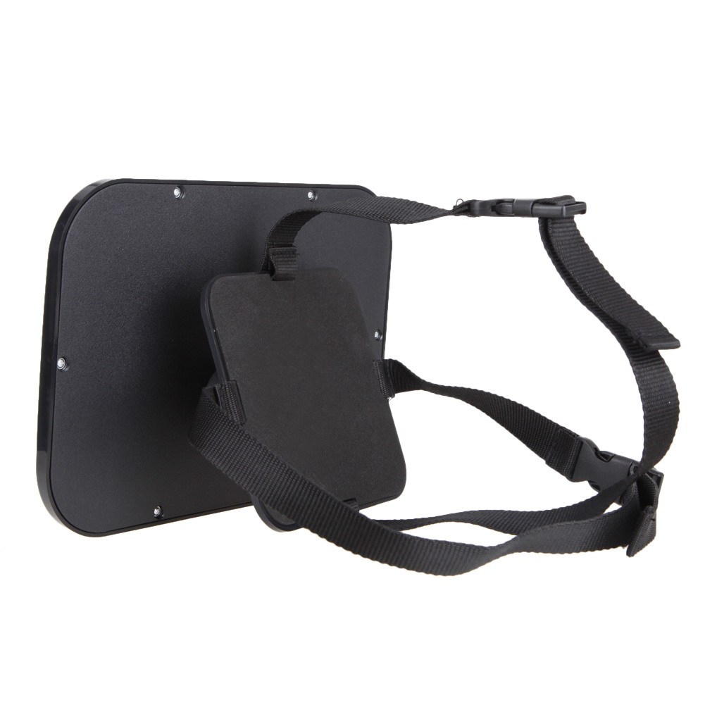 Adjustable shoulder strap makes the mirror possible for any headrest shape